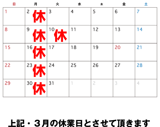 更新日: 2026年3月1日2026年1月27日店舗からのお知らせ2026年 3月 休業日のお知らせ 【250512中村屋惣菜製作所・出町柳店】5月の定休日は後半の月曜二回です。 よろしくお願いします。